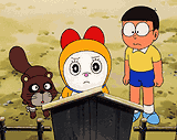 Personajes Nobi Nobita: El único niño de la familia, Nobita desafortunadamente heredó de su padre la poca habilidad para los estudios y de su madre la poca destreza atlética además de su vista cansada. Solo se le da bien dormir y disparar, cosas que són inútiles en la sociedad japonesa moderna. |