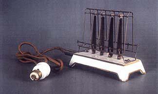 Tipos de Adaptadores: A - B - C - D - E - F - G - H - I - J - K - L - M Cuando la electricidad llegó a los entornos domésticos era principalmente para la iluminación, sin embargo, cuando esto resultó una alternativa viable a los otros medios de calefacción y además del desarrollo de aparatos (utensilios, electrodomésticos..) que ahorran trabajo, fue necesario un medio de conexión al suministro diferente a la toma de luz. En los años 20 apareció el enchufe de dos púas. En esa época, algunas compañías eléctricas operaban con sistemas de tarifación divididos donde el coste de la electricidad para la luz era más bajo que para otras cosas, lo cual llevó a que los aparatos de bajo voltaje (como los aspiradores, secadores de pelo..) fuesen conectados a la toma de luz. La foto de abajo muestra una tostadora eléctrica de 1909 con una clavija de enchufe de bombilla.